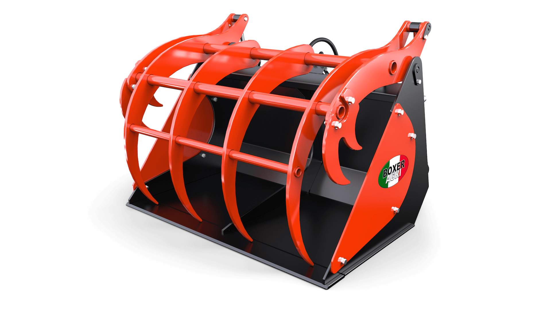 The pelican bucket is suitable for loading and moving loose materials such as manure, silage and other agricultural products. The bucket is equipped with a hydraulically driven top clamp, which holds the material securely during transport.